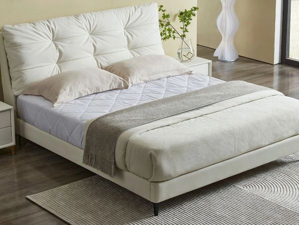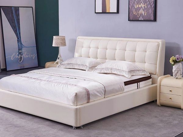 Add a touch of luxury to your bedroom with the Coco Leather Bed Frame. Made from durable microfiber synthetic leather, this bed frame features a stylish tiles pattern on the headboard. The soft headboard and cream color create a sophisticated and inviting look. Available in Queen and Super King sizes, the Coco Bed Frame is the perfect addition to any bedroom.