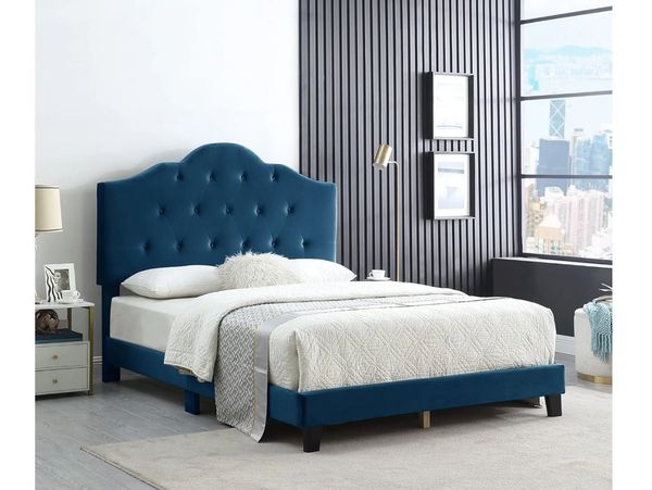 Add a touch of elegance and comfort to your bedroom with the Cove Fabric Upholstery Bed Frame. This bed frame features a classic-style headboard with button-dot detailing, providing both style and support. The sturdy polywood frame and solid wood legs ensure durability, while the comfortable foam padding and durable fabric cover provide a luxurious sleeping experience. The Cove Bed Frame is the perfect addition to any bedroom.
