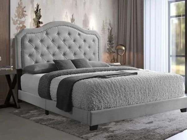 The Brookside Bed Frame is a modern and elegant addition to any bedroom. Upholstered in a serene silver grey fabric, this bed frame features a plush headboard filled with foam and down for added comfort. The sturdy wooden frame and reliable metal hardware ensure durability, while the Queen-sized dimensions provide ample space for a restful night's sleep. The Brookside Bed Frame is a perfect blend of luxury and functionality.