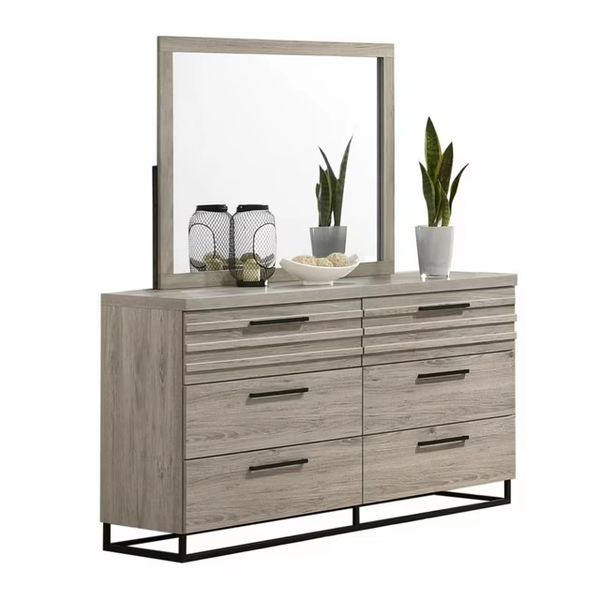 The Westden 6-Drawer Dresser with Mirror is a modern and elegant piece. Featuring 6 drawers with ball bearing glides, sleek metal drawer handles, and sturdy metal legs, this dresser offers both style and functionality. The included square-shaped mirror provides added convenience, making it a perfect storage solution for any bedroom.