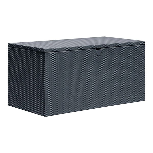 The Patio Flare Wicker Storage Deck Box is a stylish and functional outdoor storage solution. Made of handwoven wicker and featuring a durable powder-coated steel frame, this deck box offers ample storage space for your outdoor cushions and accessories. The included water-resistant cushion provides extra seating and can be stored inside the box lid.