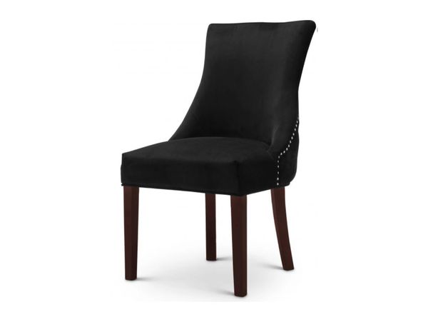 The Franklin Velvet Dining Chair is a luxurious and stylish addition to any dining room. Its plush velvet upholstery, deep tufted design, and curved high back create a sophisticated and inviting atmosphere. The espresso wood legs provide a sturdy foundation and complement the stunning black upholstery, creating a sleek and contemporary design. With its comfortable seating and elegant appearance, the Franklin Velvet Dining Chair is the perfect choice for those seeking a luxurious dining experience.