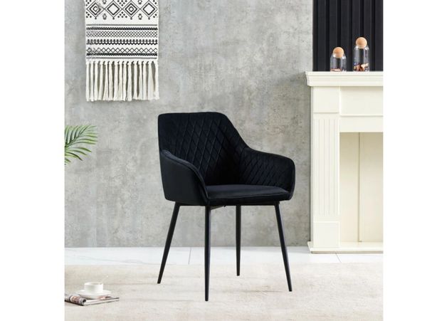 The Noho Arm Chair is a luxurious and stylish addition to any dining room. Its plush velvet upholstery, intricate quilted detailing, and contrasting black metal legs create a sophisticated and elegant atmosphere. The comfortable foam and fabric seating ensure a pleasant dining experience, making the Noho Arm Chair the perfect choice for those seeking both style and comfort.