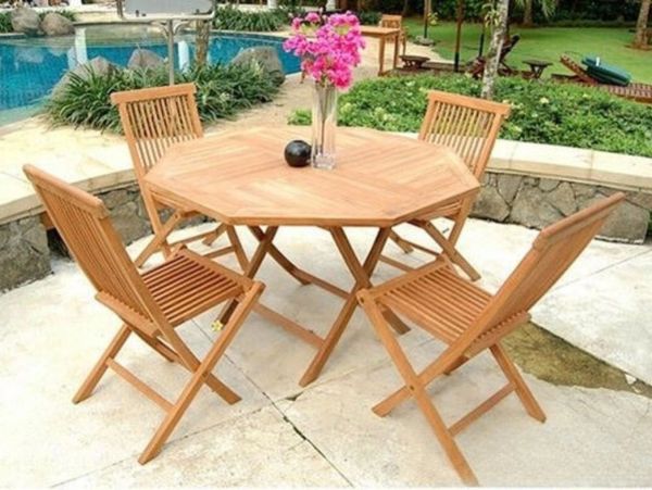 The Bali Solid Teak Table Set is a classic and elegant set made from high-quality solid teak. It features a rectangular dining table and four comfortable chairs, providing a stylish and functional outdoor dining experience.