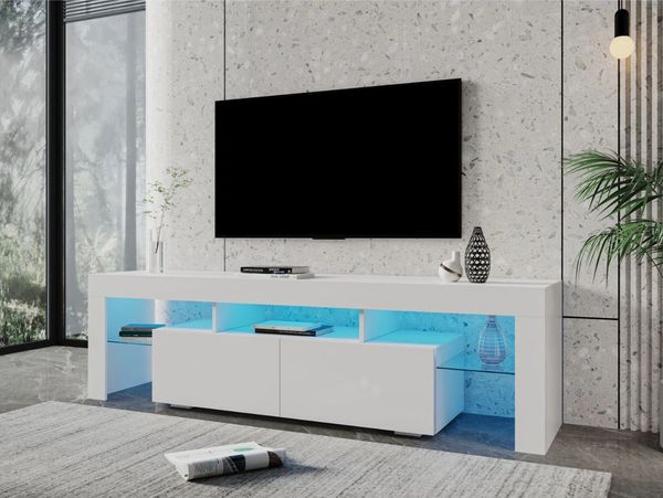 The Emma LED 63" TV Unit is a modern and versatile piece designed to enhance your entertainment space. Its sleek design and ample storage options make it a perfect fit for any living room or bedroom. The high-gloss UV MDF front and melamine frame provides a durable and attractive finish, while the 20 LED color effects create a beautiful ambiance. With plenty of space for your TV, gaming consoles, DVD players, and other electronics, the Emma LED TV Unit is both stylish and functional.