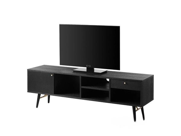 The LUX 150 cm TV Unit is a stylish and functional piece that brings a touch of Scandinavian design to your home. Its matte black finish, copper handles, and tapered metal legs create a modern and minimalist look. The durable construction and ample storage space make it a practical and versatile addition to any living room or entertainment area.